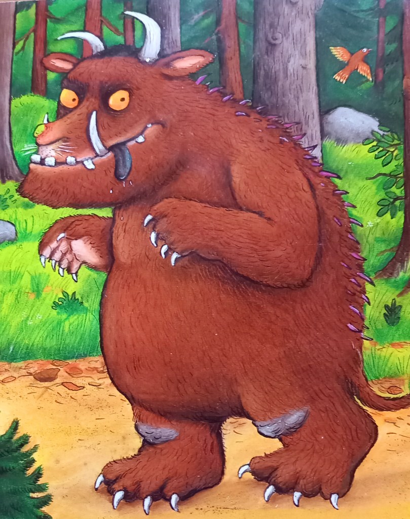 De ene griezel… Er is iets in de literatuurwereld dat ik niet begrijp. En dat is het overdonderende succes van De Gruffalo, een prentenboek op rijm van Julia Donaldson. Muis maakt zijn vijanden in het bos bang door te vertellen over de Gruffalo, een monster met knarsende tanden, eeltige knieën, oranje ogen, paarse stekels en een gifgroene wrat. Muis is in zijn nopjes want de Gruffalo bestaat helemaal niet. Of bestaat-ie wel?